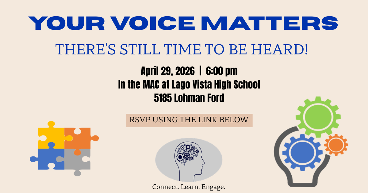 We are setting a vision for the future of LVISD and want to hear from you! Join us on Thursday, April 29th @ 6:00pm in the MAC at LV High School | 5185 Lohman Ford Rd.